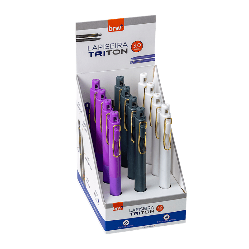 A lapiseira Triton 3.0mm é produzida em material plástico durável, possui design ergonômico para melhor pegada e vem com apontador embutido para maior praticidade. Sua ponta grossa é perfeita para trabalhos que exigem um traço resistente, indicando também fácil recarga de grafite na medida de 3.0mm.